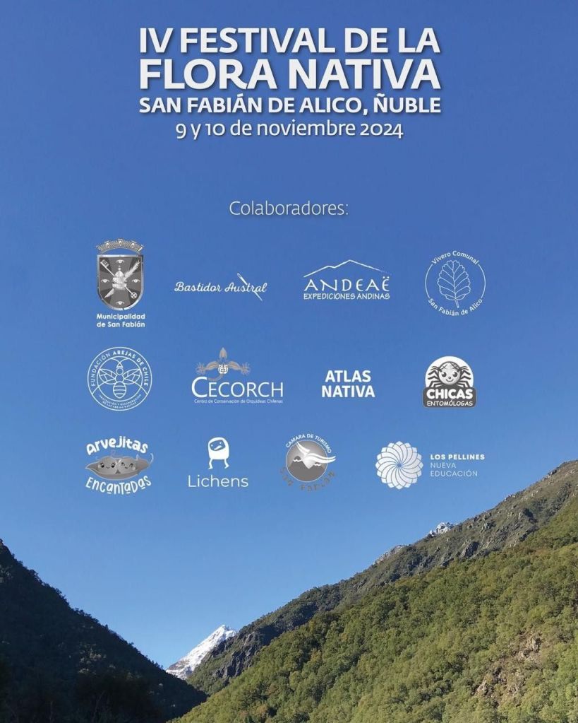 El Festival se llevará a cabo los días 9 y 10 de noviembre de 2024, con el lema de celebrar a los polinizadores. Este evento incluye charlas, talleres prácticos, actividades para niños, salidas a terreno y música en vivo. Entre las salidas destacadas se encuentran una expedición a la flora altoandina del cordón Malalcura y una exploración sensorial del bosque nativo en el Fundo Bullileo, ambas con cupos limitados.